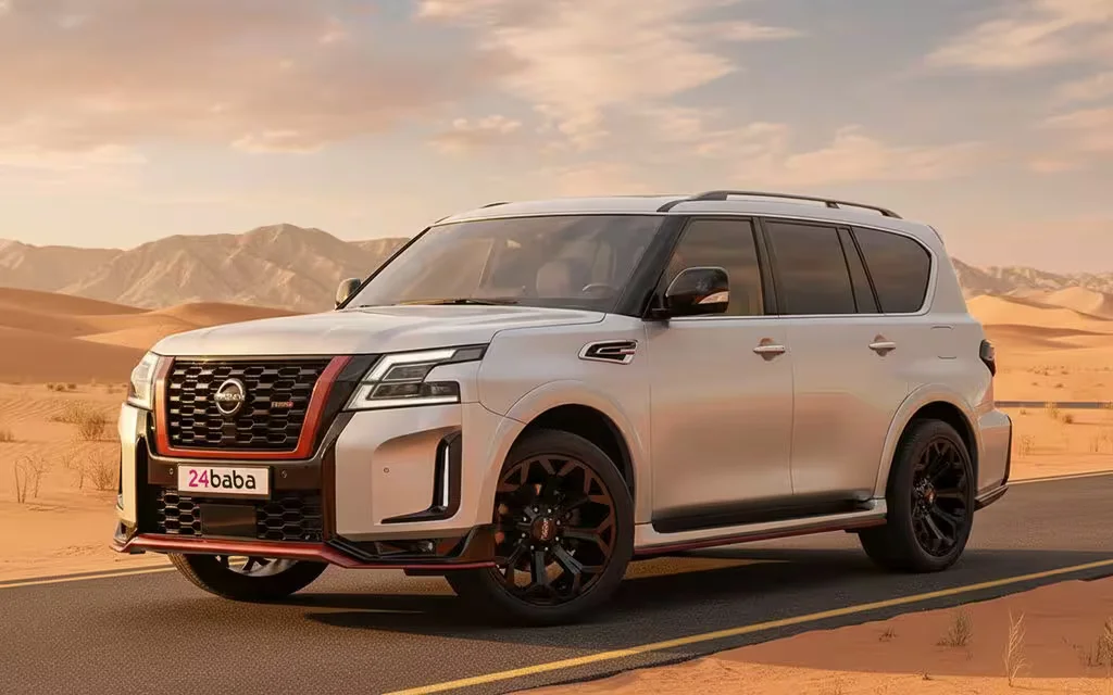 The Nissan Patrol 2025 carries forward the legendary Patrol DNA with a powerful engine lineup, commanding road presence, and a premium cabin loaded with infotainment and safety features. Built to absorb both the smooth tarmac of Sheikh Zayed Road and the rough contours of Hatta mountain trails, this model remains one of the highest-demanded vehicles in the 24Baba fleet — equally suited to a business delegation, a large family trip, or a cross-emirate weekend drive.