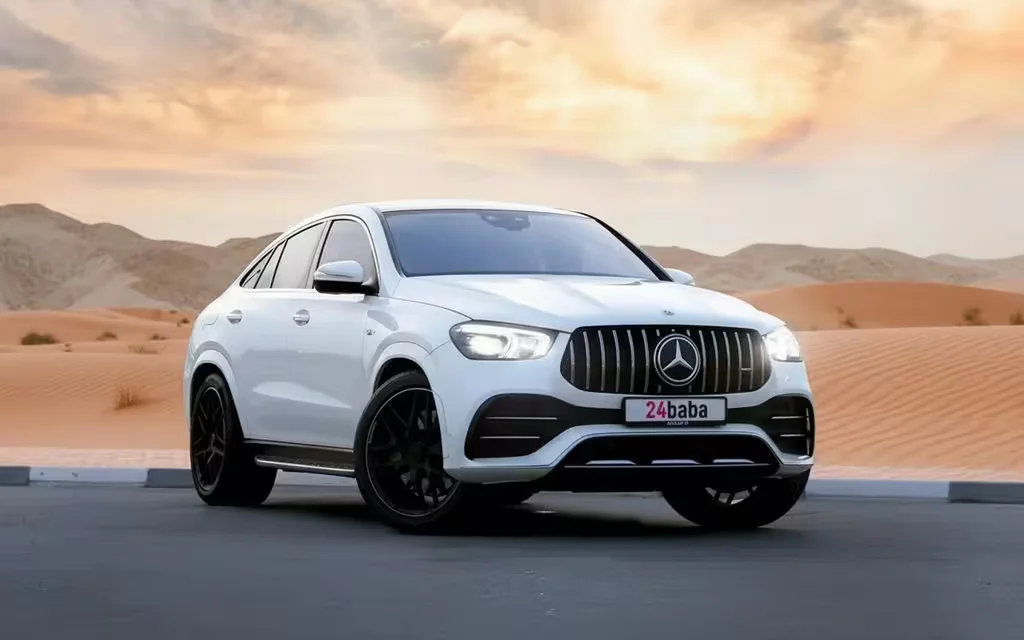 You can now rent the 2021 Mercedes GLE53, a powerful luxury SUV that combines thrilling performance with everyday usability. This vehicle is perfect for those who want the excitement of a sports car and the space of an SUV. Whether you are visiting for business or pleasure, you can hire this impressive vehicle for an unforgettable driving experience. With its striking white exterior and muscular design, the GLE53 makes a statement wherever it goes. We make it easy to book this vehicle, and delivery is available for your convenience.