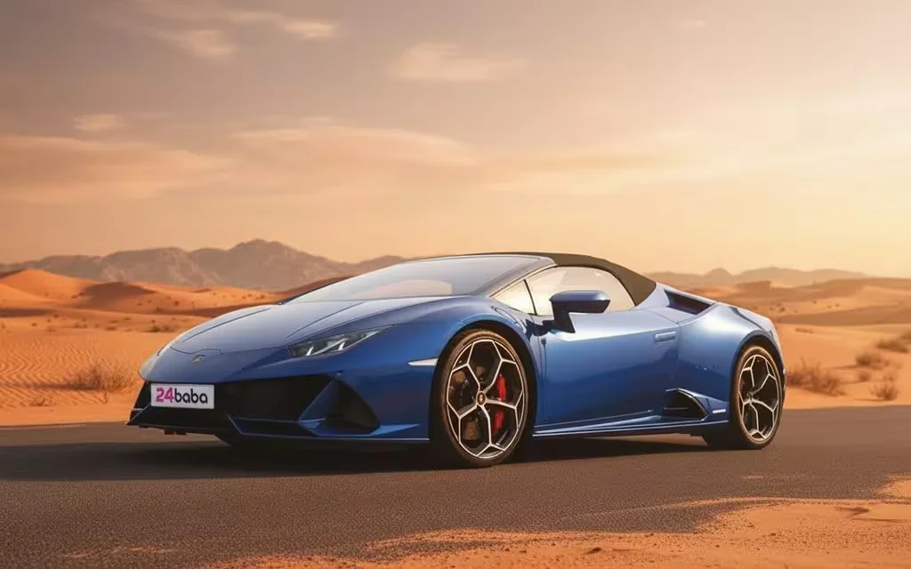 The Lamborghini Huracan is famous for its sharp, aggressive lines that make it look fast even when it is standing still. The bright blue color makes this car a true head-turner. As a convertible, you get the best of both worlds. With the top down, you can enjoy the open air and the incredible sound of the engine. It creates a driving experience that is totally immersive. Inside, you will find a cockpit built for the driver. The two sport seats are designed to be both comfortable and supportive, holding you firmly in place during spirited driving. Every detail, from the steering wheel to the dashboard, is crafted to make you feel like you are in control of something truly special.